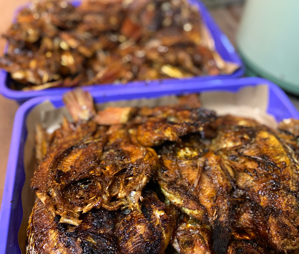 Saya tidak memiliki peran khusus dalam acara tersebut, namun saya ngide untuk mendokumentasikannya dalam bentuk foto dan video. Lumayan, ini bisa jadi kenang-kenangan dan bukti kekompakan kami dalam hidup bertetangga. Ada yang menyiapkan tempat makan, menggoreng ikan nila, meracik bumbu bakaran, dan tentu saja membakar ikan-ikan itu dengan arang dan kipas manual.
