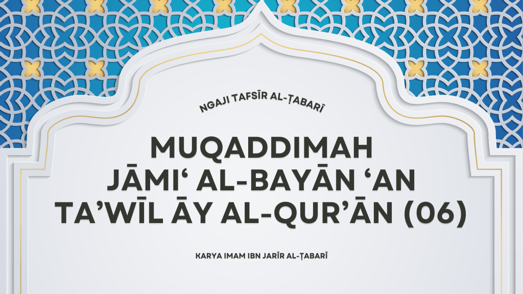 * Artikel ini disarikan dari pembacaan dan refleksi penulis terhadap bagian muqaddimah dari kitab Jāmi‘ al-Bayān ‘an Ta’wīl Āy al-Qur’ān karya Abū Ja‘far Muḥammad ibn Jarīr ibn Yazīd al-Ṭabarī